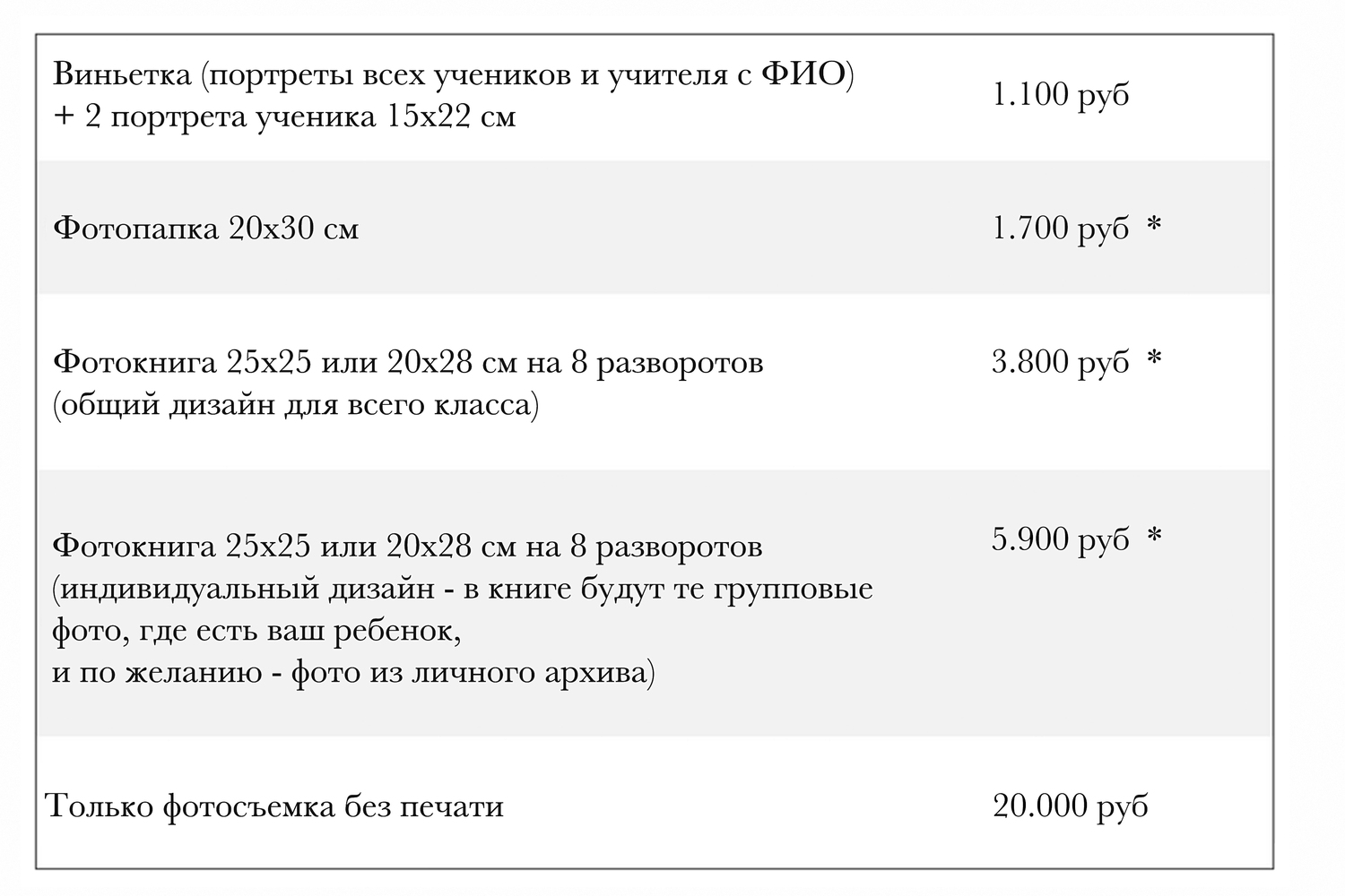 Обратите внимание, что папки и выпускные книги будут готовы в течение 5 недель после последней съемки.